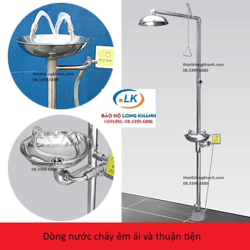 để tắm khẩn cấp khi cần thiết, có chân đạp giúp rửa mắt nhanh hơn.