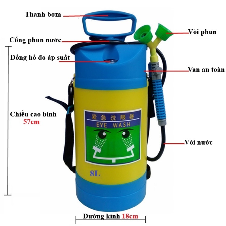 Bồn rửa mắt khẩn cấp di động dung tích 8 lít
