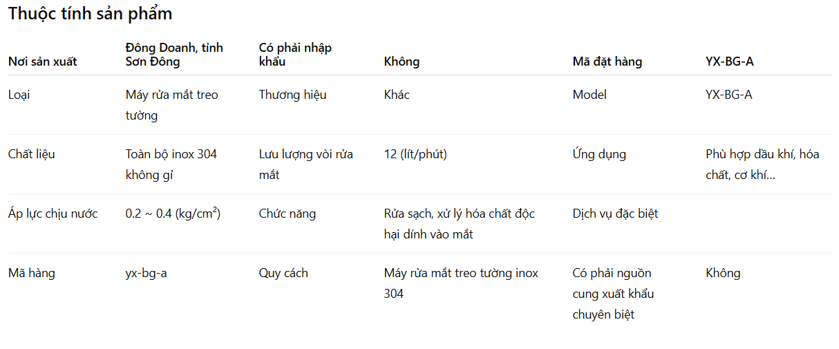 Lưu lượng rửa mắt: ≥ 12 L/phút