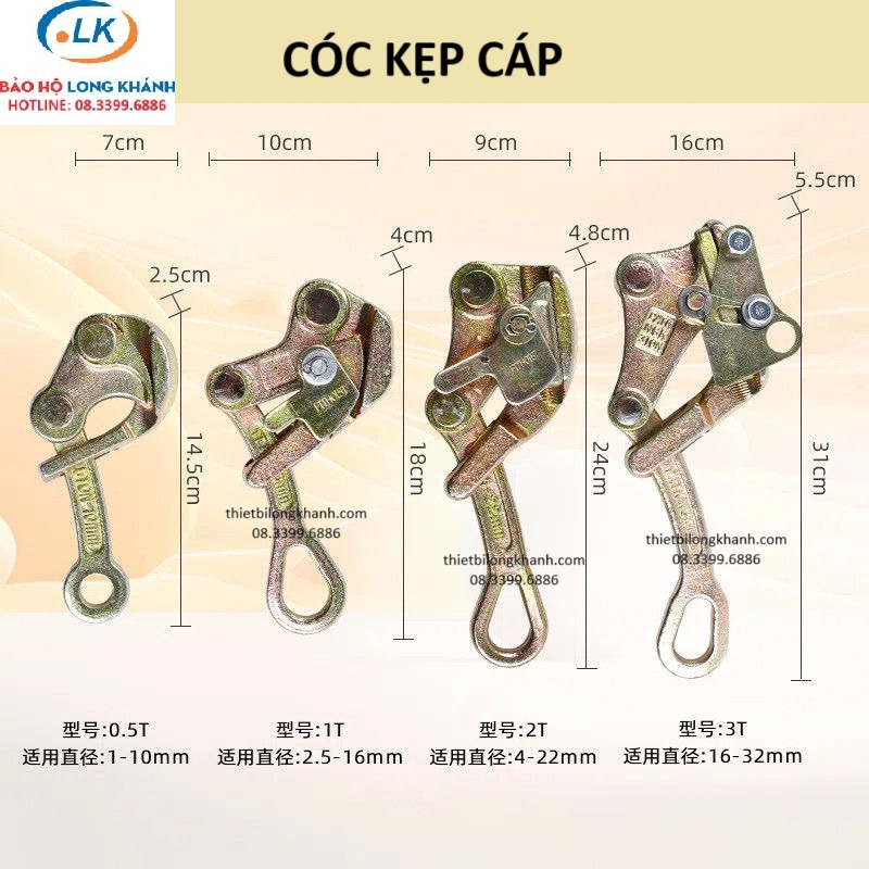 Lựa chọn cóc kẹp cáp loại phù hợp với sợi cáp: Khóa cáp phải có kích cỡ sao cho trùng với đường kính sợi cáp. Bởi nếu dùng khóa cáp loại có kích cỡ quá lớn sẽ không xiết chặt được đầu sợi cáp, dễ bị bung ra trong qua trình làm việc. Còn nếu dùng khóa cáp quá nhỏ sẽ không thể đáp ứng đủ mức tải trọng an toàn được.
