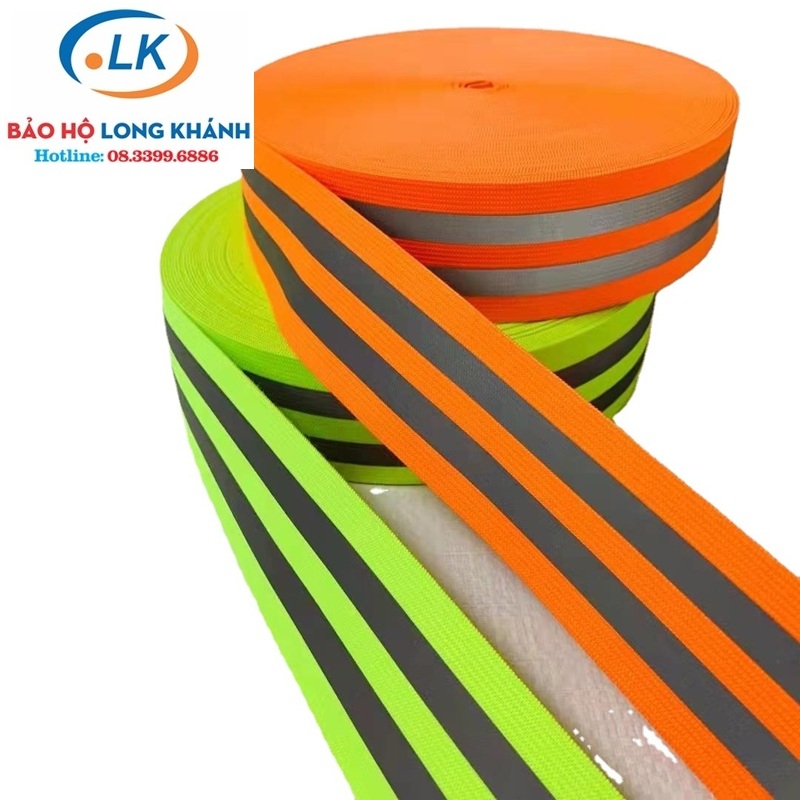 Dây vải phản quang bản rộng 5cm 2 sọc phản quang