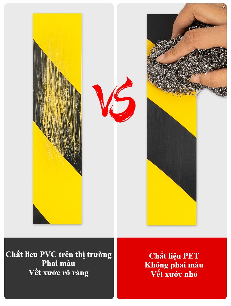 So sánh khả năng chịu mài mòn và độ bền thực tế của các loại băng cảnh báo PVC thông dụng trên thị trường. Băng cảnh báo PET có khả năng bám dính mạnh chịu mài mòn tốt hơn và có thể sử dụng lâu hơn