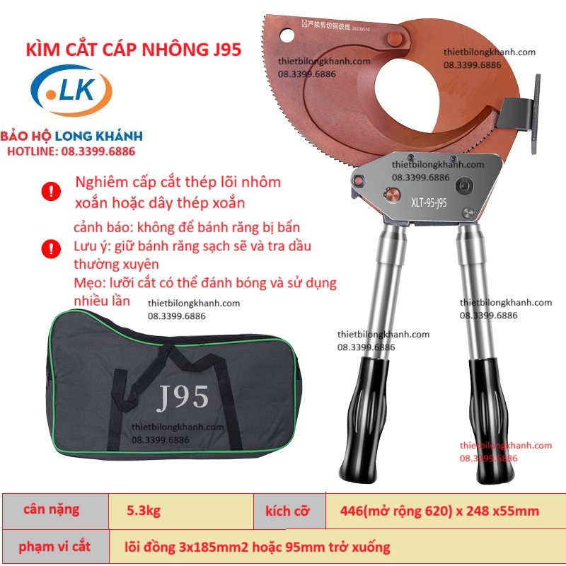 - Kìm cắt cáp nhông cao cấp J95 sử dụng cơ chế bánh răng đòn bẩy để cắt dây cáp đồng và nhôm hay cáp lõi thép không để lại gờ và cạnh sắc nét với một lực phù hợp của người thợ.