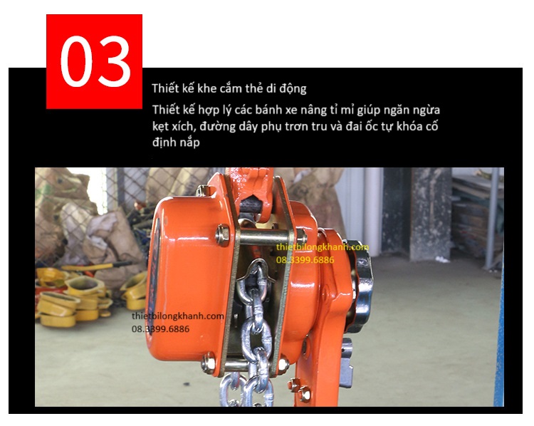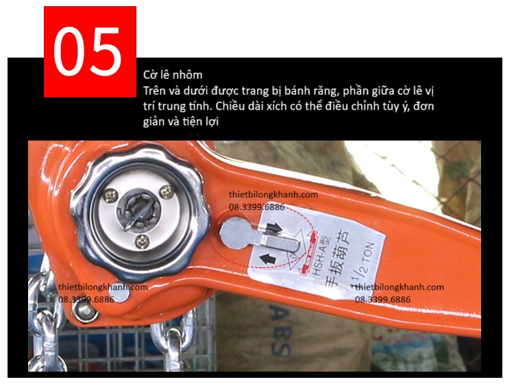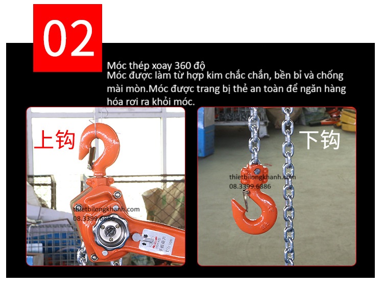 - Pa lăng, pa lăng xích lắc tay có tải trọng từ 0,5 đến 6T, độc cao nâng đến 5m.