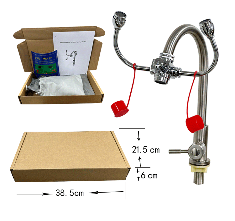 Cài đặt phần ghi chú: Lắp đặt vòi trên mặt bàn hoặc bồn rửa, cố định nó, sau đó lắp thiết bị rửa mắt vào đầu ra của vòi, nối ống dẫn nước vào, xoay tay cầm và kiểm tra tình trạng của từng đầu ra và xem tay cầm công tắc có linh hoạt hay không